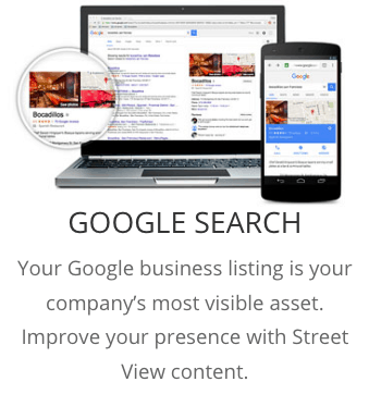 As a Google Trusted Agency we provide our clients IMMEDIATE VISIBILITY, by embedding rich media at the surface level of Google's ecosystem of Search, Maps and Street-view .